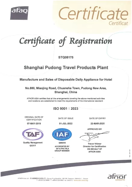 1. First gained the certification of ISO9001 in year 2010, the company also has been certifiied as “Excellent Hotel Products Supplier” for the hospitality industry since 2013 in China.