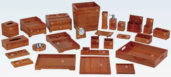 Hotel Premium Bamboo Bathroom Accessories Tissue Box Note Pad Trash Bin