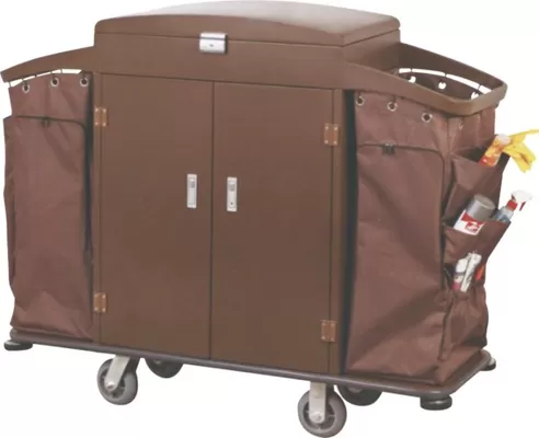 Paint Coating Hotel Housekeeping Trolley With Lid And Lockable Door